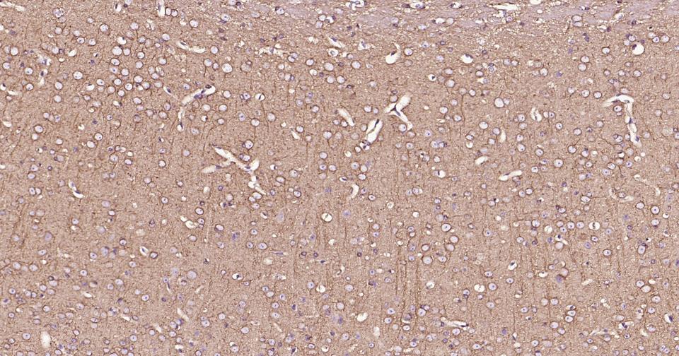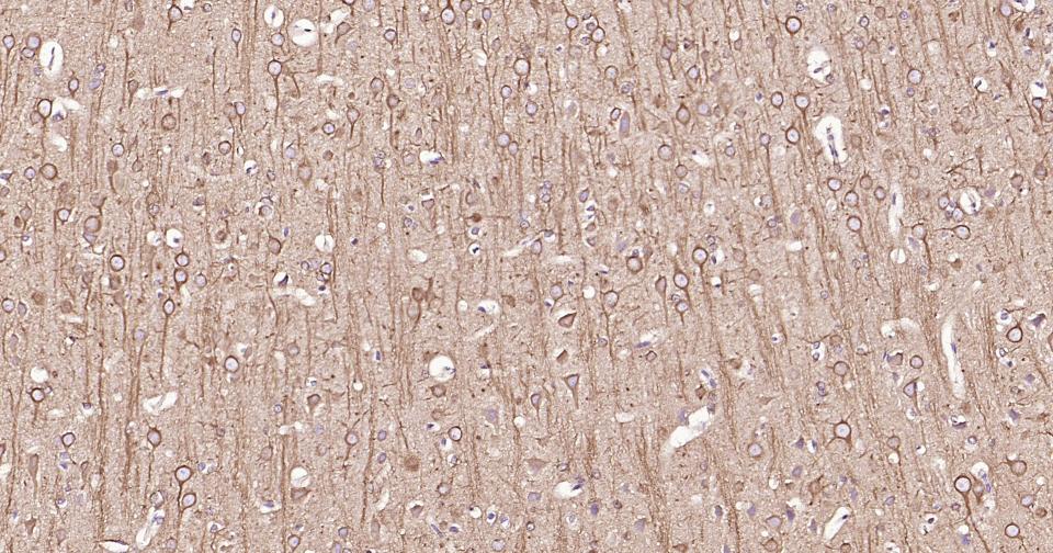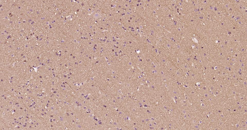 Paraformaldehyde-fixed, paraffin embedded Human Cerebrum; Antigen retrieval by boiling in sodium citrate buffer (pH6.0) for 15 min; Antibody incubation with Beta tubulin Monoclonal Antibody, Unconjugated(bsm-33120M) at 1:200 overnight at 4°C, followed by conjugation to the SP Kit (Mouse, sp-0024) and DAB (C-0010) staining.