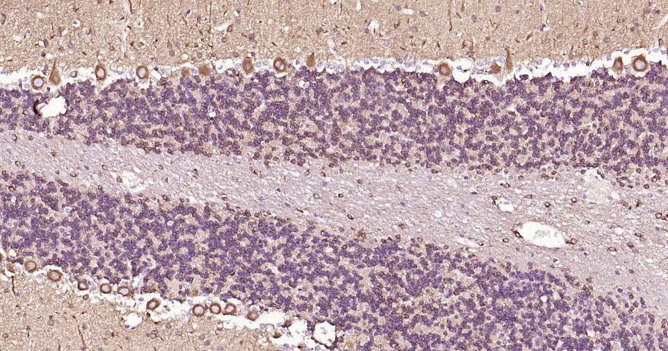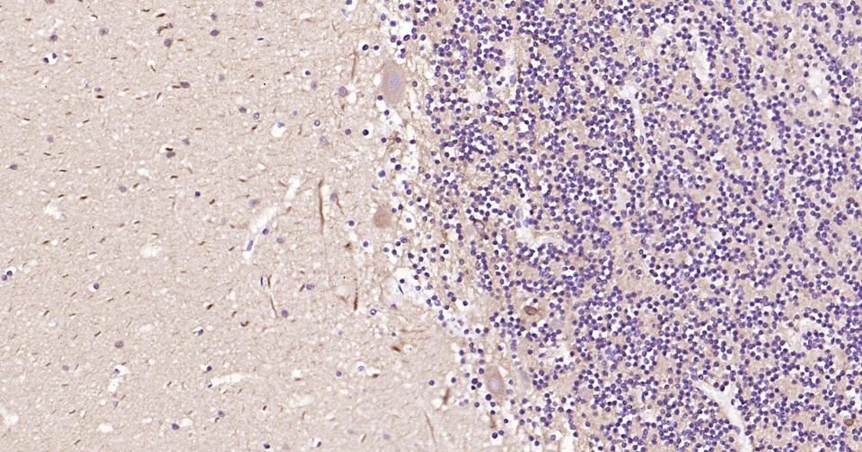 Paraformaldehyde-fixed, paraffin embedded Rat Cerebellum; Antigen retrieval by boiling in sodium citrate buffer (pH6.0) for 15 min; Antibody incubation with Beta tubulin Monoclonal Antibody, Unconjugated(bsm-33120M) at 1:200 overnight at 4°C, followed by conjugation to the SP Kit (Mouse, sp-0024) and DAB (C-0010) staining.