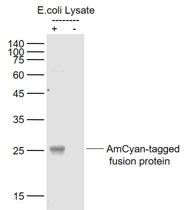 Lane 1: AmCyan-Tagged fusion protein (full length) Overexpression E.coli Lysate (Cat#: bs-33184P) at 4 ug