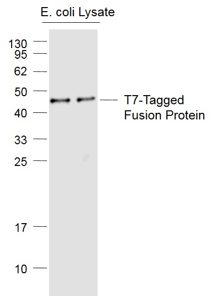 Lane 1: T7-Tagged Fusion Protein Overexpression E.coli Lysate at 2 ug