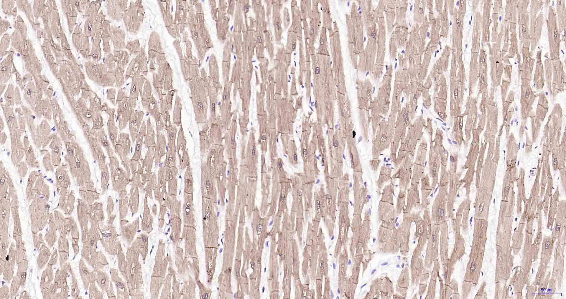 Paraformaldehyde-fixed, paraffin embedded Human Heart; Antigen retrieval by boiling in sodium citrate buffer (pH6.0) for 15 min; Antibody incubation with HSP22 Monoclonal Antibody, Unconjugated(bsm-33241M) at 1:200 overnight at 4°C, followed by conjugation to the SP Kit (Mouse, sp-0024) and DAB (C-0010) staining.