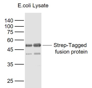 Lane 2: Strep-Tagged Fusion Protein Overexpression E.coli Lysate (Cat#: bs-41403P) at 4ug