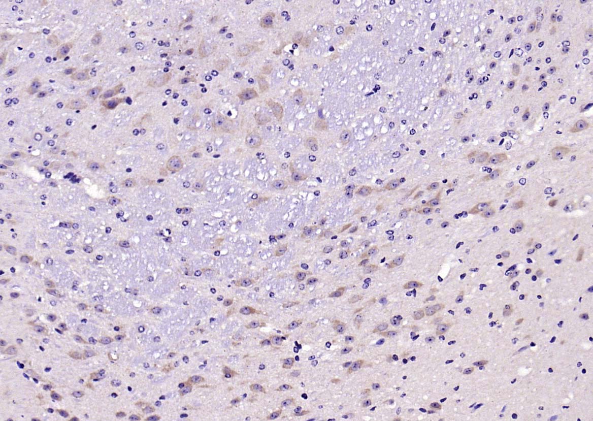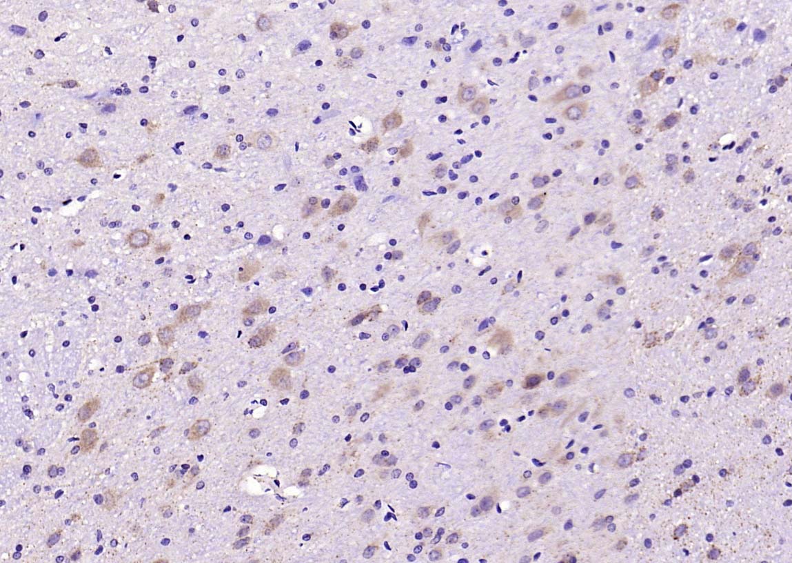Paraformaldehyde-fixed, paraffin embedded (rat brain); Antigen retrieval by boiling in sodium citrate buffer (pH6.0) for 15min; Block endogenous peroxidase by 3% hydrogen peroxide for 20 minutes; Blocking buffer (normal goat serum) at 37°C for 30min; Antibody incubation with (SOD2) Polyclonal Antibody, Unconjugated (bs-23402R) at 1:200 overnight at 4°C, followed by operating according to SP Kit(Rabbit) (sp-0023) instructionsand DAB staining.