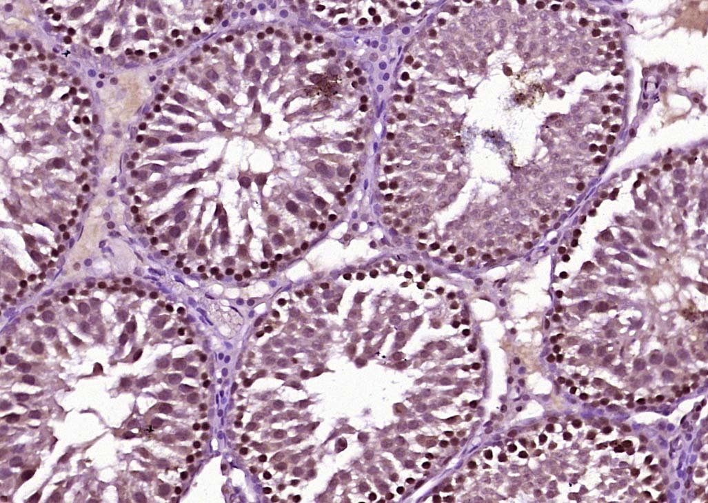 Paraformaldehyde-fixed, paraffin embedded (Rat testis); Antigen retrieval by boiling in sodium citrate buffer (pH6.0) for 15min; Block endogenous peroxidase by 3% hydrogen peroxide for 20 minutes; Blocking buffer (normal goat serum) at 37°C for 30min; Antibody incubation with (BNC1) Polyclonal Antibody, Unconjugated (bs-20583R) at 1:400 overnight at 4°C, followed by operating according to SP Kit(Rabbit) (sp-0023) instructionsand DAB staining.