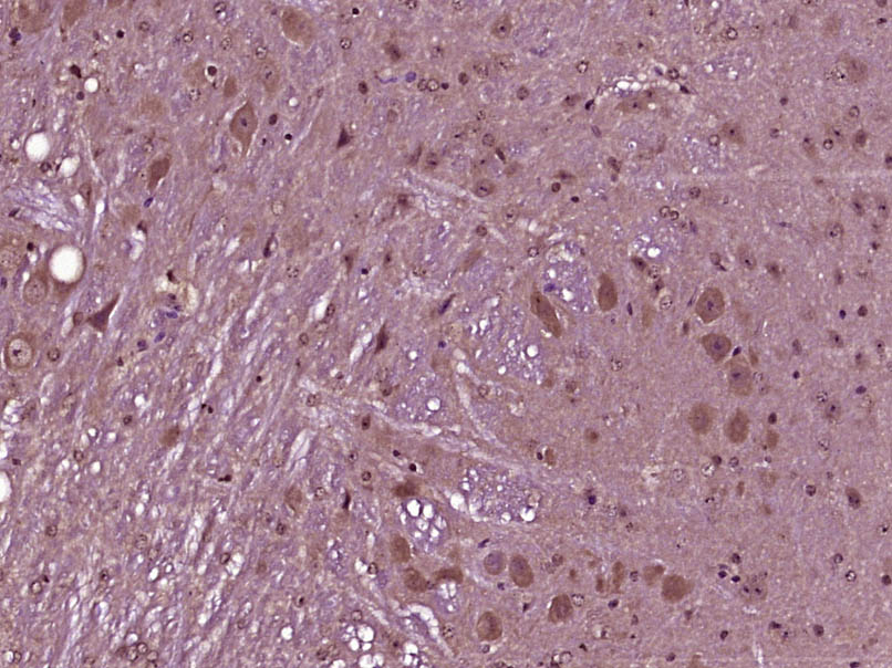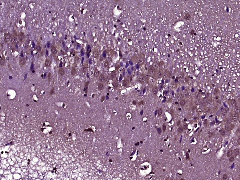 Paraformaldehyde-fixed, paraffin embedded (Rat brain); Antigen retrieval by boiling in sodium citrate buffer (pH6.0) for 15min; Block endogenous peroxidase by 3% hydrogen peroxide for 20 minutes; Blocking buffer (normal goat serum) at 37°C for 30min; Antibody incubation with (Nidogen) Polyclonal Antibody, Unconjugated (bs-23656R) at 1:400 overnight at 4°C, followed by operating according to SP Kit(Rabbit) (sp-0023) instructionsand DAB staining.