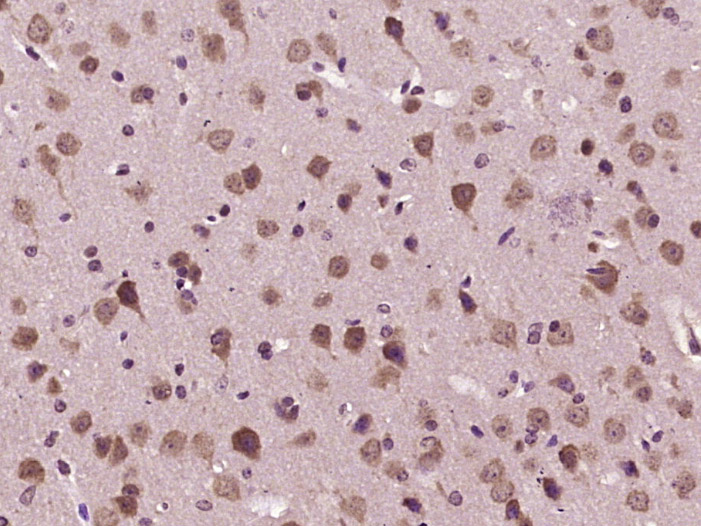 Paraformaldehyde-fixed, paraffin embedded (mouse brain tissue); Antigen retrieval by boiling in sodium citrate buffer (pH6.0) for 15min; Block endogenous peroxidase by 3% hydrogen peroxide for 20 minutes; Blocking buffer (normal goat serum) at 37°C for 30min; Antibody incubation with (B4GALT6) Polyclonal Antibody, Unconjugated (bs-23824R) at 1:400 overnight at 4°C, followed by operating according to SP Kit(Rabbit) (sp-0023) instructionsand DAB staining.
