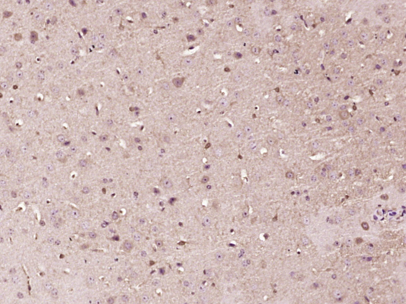 Paraformaldehyde-fixed, paraffin embedded (Mouse brain); Antigen retrieval by boiling in sodium citrate buffer (pH6.0) for 15min; Block endogenous peroxidase by 3% hydrogen peroxide for 20 minutes; Blocking buffer (normal goat serum) at 37°C for 30min; Antibody incubation with (P2X2) Polyclonal Antibody, Unconjugated (bs-23813R) at 1:400 overnight at 4°C, followed by operating according to SP Kit(Rabbit) (sp-0023) instructionsand DAB staining.