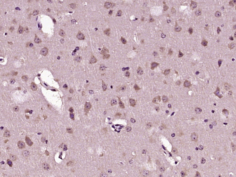 Paraformaldehyde-fixed, paraffin embedded (mouse brain tissue); Antigen retrieval by boiling in sodium citrate buffer (pH6.0) for 15min; Block endogenous peroxidase by 3% hydrogen peroxide for 20 minutes; Blocking buffer (normal goat serum) at 37°C for 30min; Antibody incubation with (MAP2) Polyclonal Antibody, Unconjugated (bs-23816R) at 1:400 overnight at 4°C, followed by operating according to SP Kit(Rabbit) (sp-0023) instructionsand DAB staining.