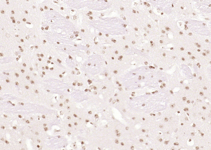 Paraformaldehyde-fixed, paraffin embedded (rat brain); Antigen retrieval by boiling in sodium citrate buffer (pH6.0) for 15min; Block endogenous peroxidase by 3% hydrogen peroxide for 20 minutes; Blocking buffer (normal goat serum) at 37°C for 30min; Antibody incubation with (Islet-1) Polyclonal Antibody, Unconjugated (bs-7346R) at 1:200 overnight at 4°C, followed by operating according to SP Kit(Rabbit) (sp-0023) instructionsand DAB staining.