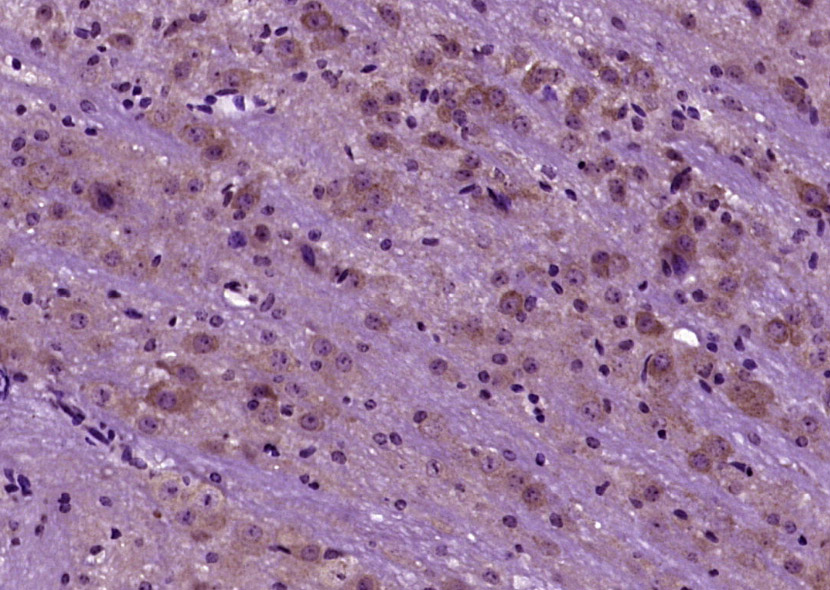 Paraformaldehyde-fixed, paraffin embedded (Mouse brain); Antigen retrieval by boiling in sodium citrate buffer (pH6.0) for 15min; Block endogenous peroxidase by 3% hydrogen peroxide for 20 minutes; Blocking buffer (normal goat serum) at 37°C for 30min; Antibody incubation with (Bid) Polyclonal Antibody, Unconjugated (bs-24248R) at 1:400 overnight at 4°C, followed by operating according to SP Kit(Rabbit) (sp-0023) instructionsand DAB staining.