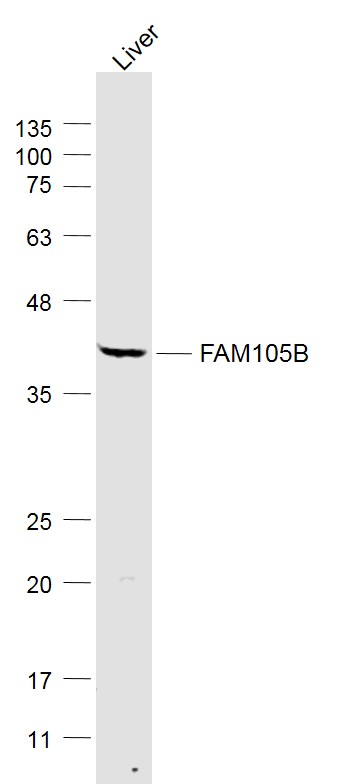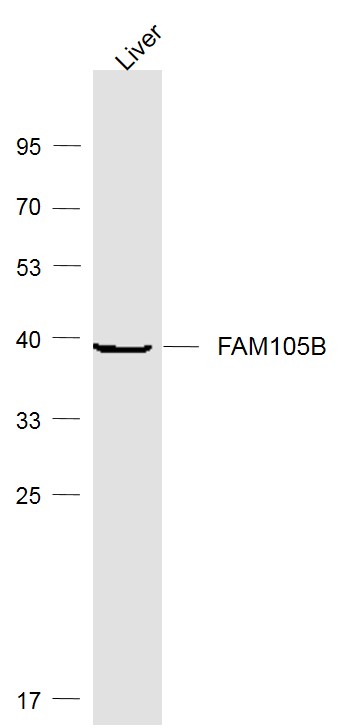 Primary: Anti- FAM105B (bs-21613R) at 1/1000 dilution