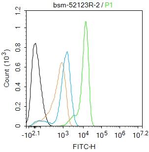 Primary Antibody (green line): Rabbit Anti-Phospho-MSK1 (Ser376)antibody (bsm-52123R)