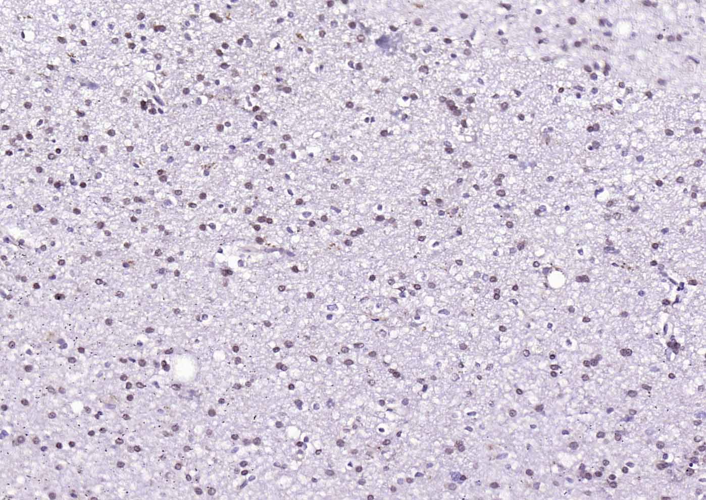 Paraformaldehyde-fixed, paraffin embedded (human brain glioma); Antigen retrieval by boiling in sodium citrate buffer (pH6.0) for 15min; Block endogenous peroxidase by 3% hydrogen peroxide for 20 minutes; Blocking buffer (normal goat serum) at 37°C for 30min; Incubation with (CDKN1B/p27 KIP 1) Monoclonal Antibody, Unconjugated (bsm-33425M) at 1:200 overnight at 4°C, followed by operating according to SP Kit(Mouse)(sp-0024) instructionsand DAB staining.
