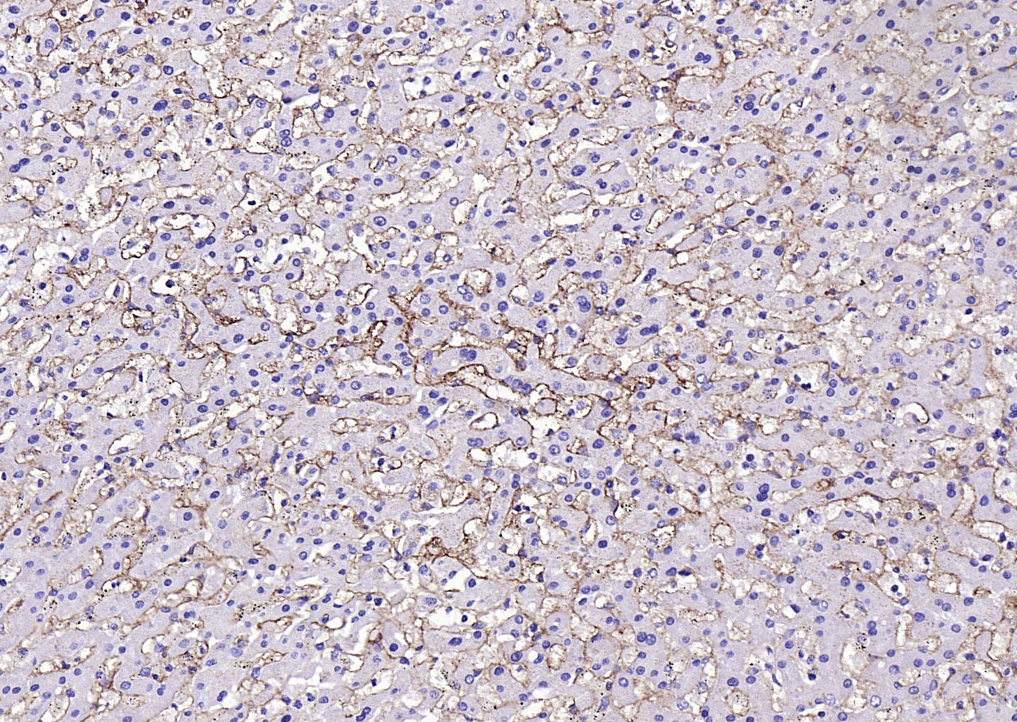 Paraformaldehyde-fixed, paraffin embedded (human liver); Antigen retrieval by boiling in sodium citrate buffer (pH6.0) for 15min; Block endogenous peroxidase by 3% hydrogen peroxide for 20 minutes; Blocking buffer (normal goat serum) at 37°C for 30min; Antibody incubation with (CD105) Polyclonal Antibody, Unconjugated (bs-41201R) at 1:200 overnight at 4°C, followed by operating according to SP Kit(Rabbit) (sp-0023) instructionsand DAB staining.