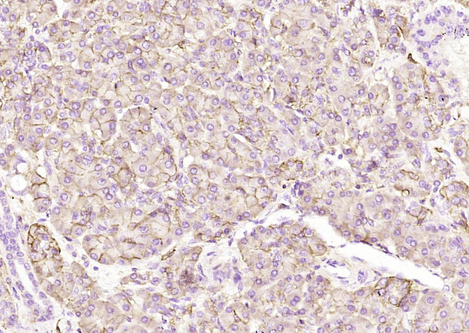 Paraformaldehyde-fixed, paraffin embedded (human pancreatic cancer); Antigen retrieval by boiling in sodium citrate buffer (pH6.0) for 15min; Block endogenous peroxidase by 3% hydrogen peroxide for 20 minutes; Blocking buffer (normal goat serum) at 37°C for 30min; Antibody incubation with (CD44) Monoclonal Antibody, Unconjugated (BH0185) overnight at 4°C, followed by operating according to SP Kit(Mouse)(sp-0024) instructionsand DAB staining.