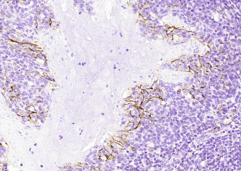 Paraformaldehyde-fixed, paraffin embedded (human cervical carcinoma); Antigen retrieval by boiling in sodium citrate buffer (pH6.0) for 15min; Block endogenous peroxidase by 3% hydrogen peroxide for 20 minutes; Blocking buffer (normal goat serum) at 37°C for 30min; Antibody incubation with (CD31) Monoclonal Antibody, Unconjugated (BH0190) overnight at 4°C, followed by operating according to SP Kit(Mouse)(sp-0024) instructionsand DAB staining.