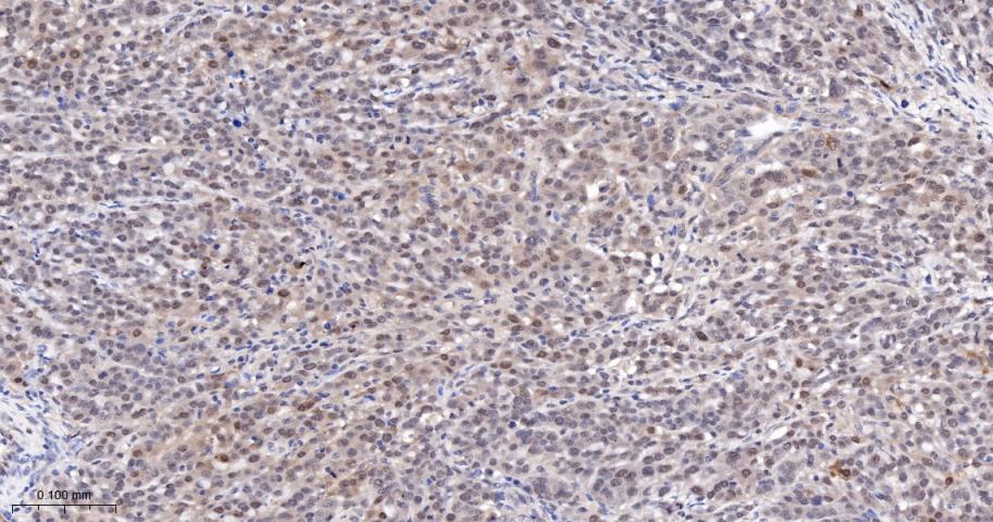 Paraformaldehyde-fixed, paraffin embedded Human Ovarian Cancer; Antigen retrieval by boiling in sodium citrate buffer (pH6.0) for 15 min; The section was incubated with 14-3-3 sigma Monoclonal Antibody, Unconjugated (bsm-52005R) at 1:200 overnight at 4°C, followed by conjugation to the bs-0295G-HRP and DAB (C-0010) staining.