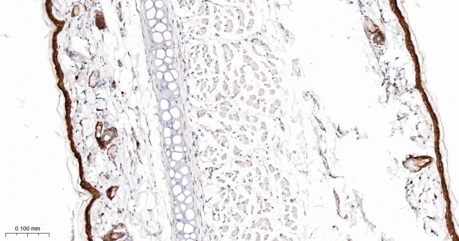 Paraformaldehyde-fixed, paraffin embedded Rat Skin; Antigen retrieval by boiling in sodium citrate buffer (pH6.0) for 15 min; The section was incubated with 14-3-3 sigma Monoclonal Antibody, Unconjugated (bsm-52005R) at 1:200 overnight at 4°C, followed by conjugation to the bs-0295G-HRP and DAB (C-0010) staining.