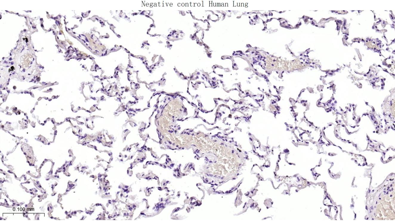 (Negative control) Paraformaldehyde-fixed, paraffin embedded Human Lung; Antigen retrieval by boiling in sodium citrate buffer (pH6.0) for 15 min; Antibody incubation with Aurora B Monoclonal Antibody, Unconjugated(bsm-52019R) at 1:200 overnight at 4°C, followed by conjugation to the bs-0295G-HRP and DAB (C-0010) staining.