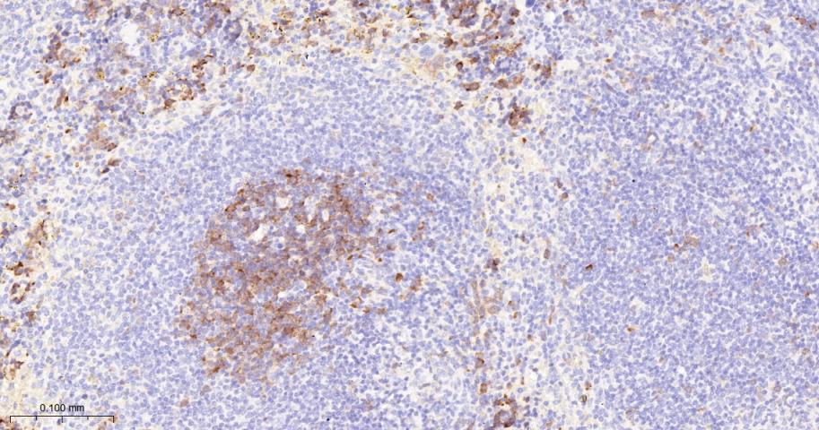 Paraformaldehyde-fixed, paraffin embedded Rat Spleen; Antigen retrieval by boiling in sodium citrate buffer (pH6.0) for 15 min; The section was incubated with CDK1 Monoclonal Antibody, Unconjugated (bsm-52026R) at 1:200 overnight at 4°C, followed by conjugation to the bs-0295G-HRP and DAB (C-0010) staining.