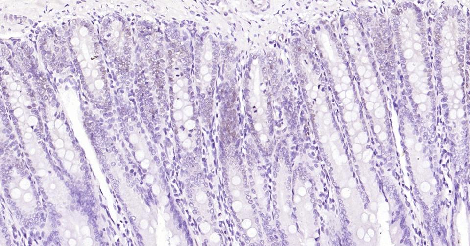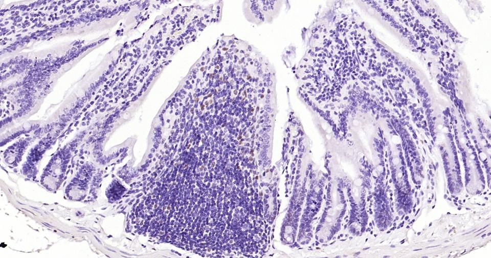 Paraformaldehyde-fixed, paraffin embedded Mouse Small Intestine; Antigen retrieval by boiling in sodium citrate buffer (pH6.0) for 15 min; Antibody incubation with Cyclin D1 Monoclonal Antibody, Unconjugated(bsm-52046R) at 1:200 overnight at 4°C, followed by conjugation to the SP Kit (Rabbit, SP-0023) and DAB (C-0010) staining