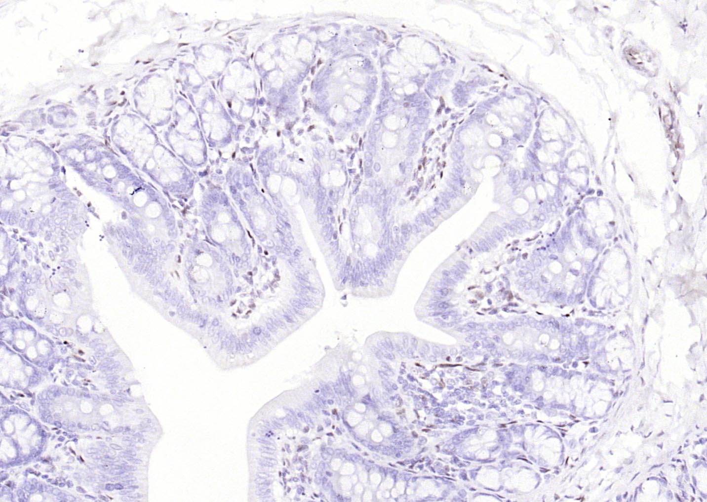 Paraformaldehyde-fixed, paraffin embedded (mouse colon); Antigen retrieval by boiling in sodium citrate buffer (pH6.0) for 15min; Block endogenous peroxidase by 3% hydrogen peroxide for 20 minutes; Blocking buffer (normal goat serum) at 37°C for 30min; Antibody incubation with (phospho-ATF2 (Thr71)) Monoclonal Antibody, Unconjugated (bsm-52134R) at 1:200 overnight at 4°C, followed by operating according to SP Kit(Rabbit) (sp-0023) instructionsand DAB staining.