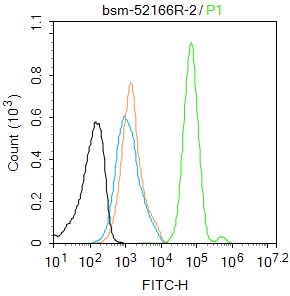 Primary Antibody (green line): Rabbit Anti-phospho-HSF1 (Ser326) antibody (bsm-52166R)