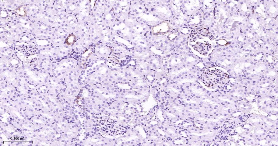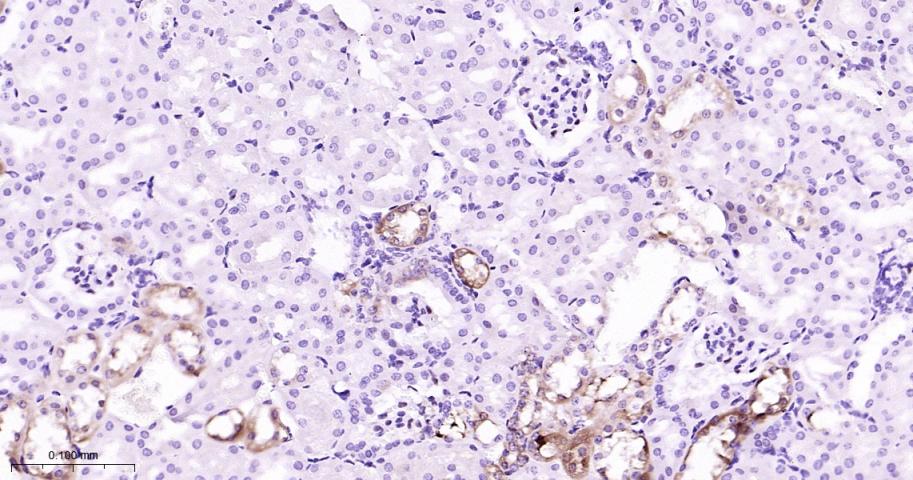 Paraformaldehyde-fixed, paraffin embedded Mouse kidney; Antigen retrieval by boiling in sodium citrate buffer (pH6.0) for 15 min; Antibody incubation with phospho-MEK1 (Ser298) Monoclonal Antibody, Unconjugated(bsm-52175R) at 1:200 overnight at 4°C, followed by conjugation to the bs-0295G-HRP and DAB (C-0010) staining.