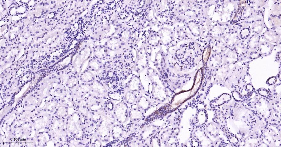 Paraformaldehyde-fixed, paraffin embedded Human kidney; Antigen retrieval by boiling in sodium citrate buffer (pH6.0) for 15 min; Antibody incubation with phospho-MEK1 (Ser298) Monoclonal Antibody, Unconjugated(bsm-52175R) at 1:200 overnight at 4°C, followed by conjugation to the bs-0295G-HRP and DAB (C-0010) staining.