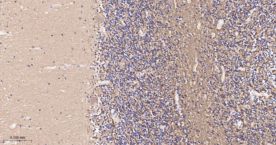 Paraformaldehyde-fixed, paraffin embedded Human Cerebellum; Antigen retrieval by boiling in sodium citrate buffer (pH6.0) for 15 min; The section was incubated with SIRT2 Monoclonal Antibody, Unconjugated (bsm-52221R) at 1:100 overnight at 4°C, followed by conjugation to the bs-0295G-HRP and DAB (C-0010) staining.