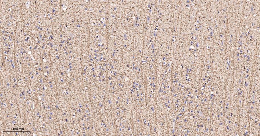 Paraformaldehyde-fixed, paraffin embedded Human Cerebrum; Antigen retrieval by boiling in sodium citrate buffer (pH6.0) for 15 min; The section was incubated with SIRT2 Monoclonal Antibody, Unconjugated (bsm-52221R) at 1:100 overnight at 4°C, followed by conjugation to the bs-0295G-HRP and DAB (C-0010) staining.
