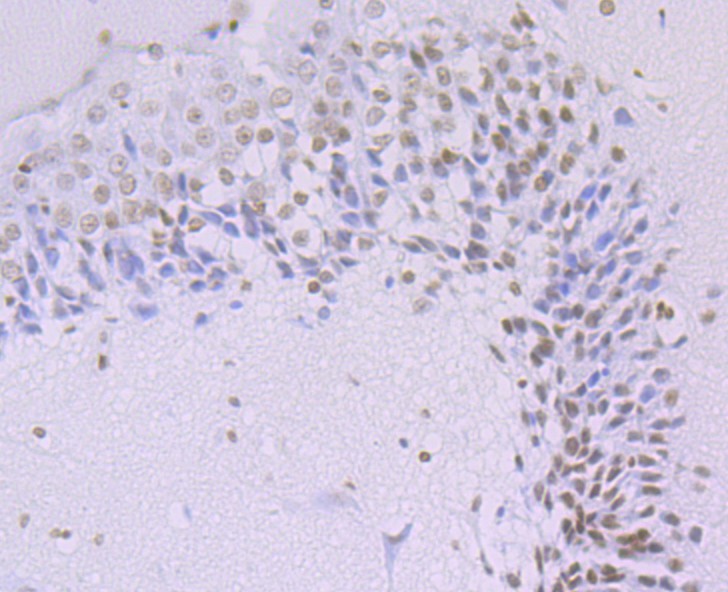 Paraformaldehyde-fixed, paraffin embedded (rat brain); Antigen retrieval by boiling in sodium citrate buffer (pH6.0) for 15min; Block endogenous peroxidase by 3% hydrogen peroxide for 20 minutes; Blocking buffer (normal goat serum) at 37°C for 30min; Antibody incubation with (Histone H3 (acetyl K14)) Monoclonal Antibody, Unconjugated (bsm-54178R) at 1:50 overnight at 4°C, followed by operating according to SP Kit(Rabbit) (sp-0023) instructionsand DAB staining.