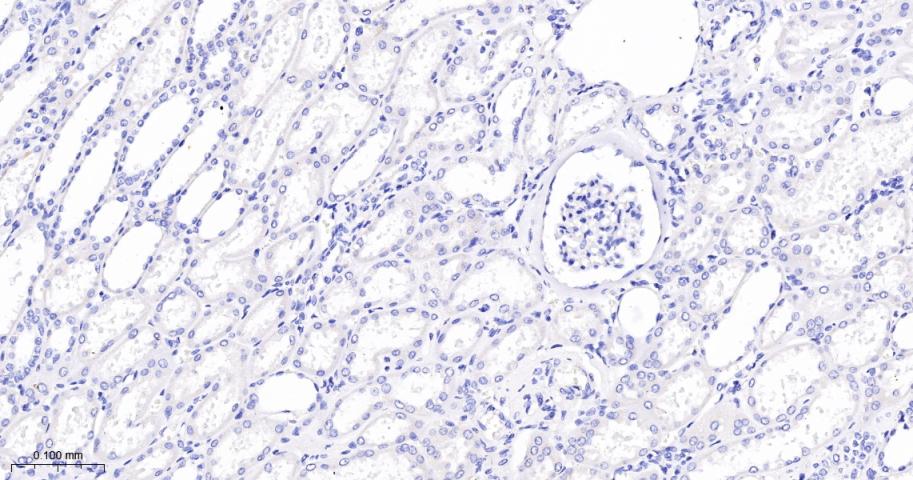 (Negative control) Paraformaldehyde-fixed, paraffin embedded Rat Liver; Antigen retrieval by boiling in sodium citrate buffer (pH6.0) for 15 min; The section was incubated with RAGE Monoclonal Antibody, Unconjugated (bsm-52809R) at 1:200 overnight at 4°C, followed by conjugation to the bs-0295G-HRP and DAB (C-0010) staining.