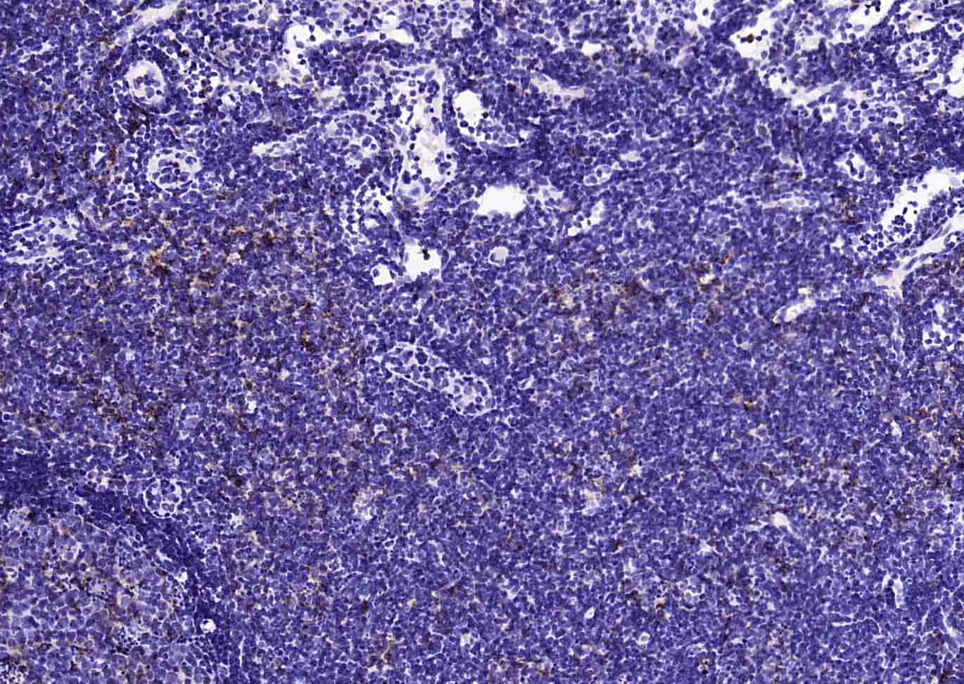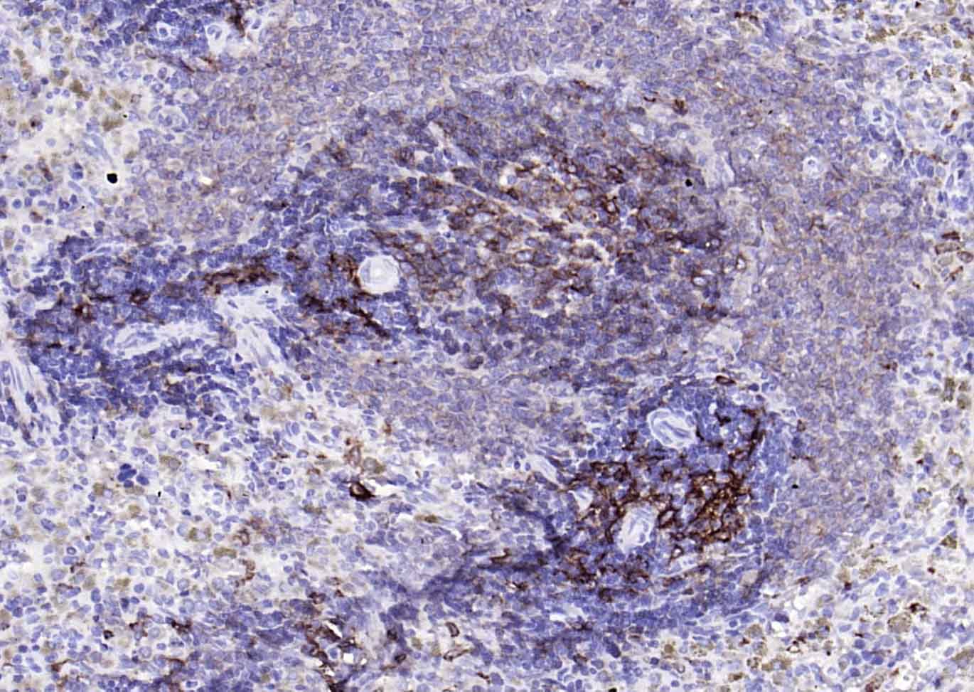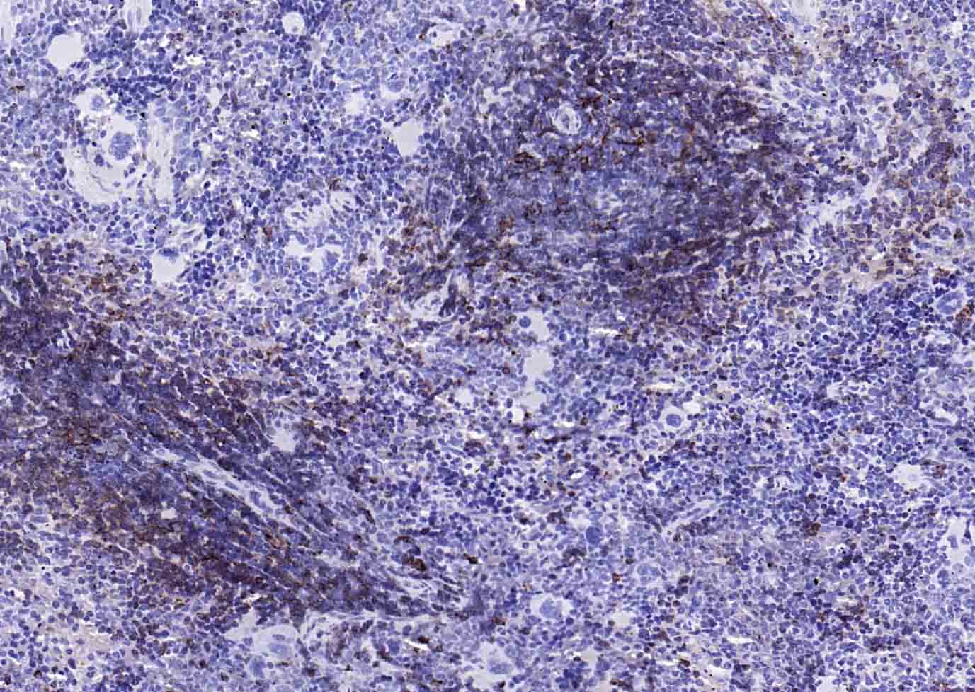 Paraformaldehyde-fixed, paraffin embedded (rat lymphoid); Antigen retrieval by boiling in sodium citrate buffer (pH6.0) for 15min; Block endogenous peroxidase by 3% hydrogen peroxide for 20 minutes; Blocking buffer (normal goat serum) at 37°C for 30min; Antibody incubation with (HLA-DQA1) Monoclonal Antibody, Unconjugated (bsm-54201R) at 1:200 overnight at 4°C, followed by operating according to SP Kit(Rabbit) (sp-0023) instructionsand DAB staining.