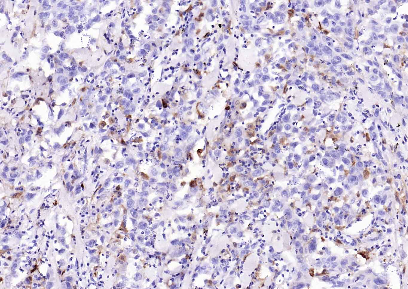 Paraformaldehyde-fixed, paraffin embedded (human lung carcinoma); Antigen retrieval by boiling in sodium citrate buffer (pH6.0) for 15min; Block endogenous peroxidase by 3% hydrogen peroxide for 20 minutes; Blocking buffer (normal goat serum) at 37°C for 30min; Antibody incubation with (HLA-DQA1) Monoclonal Antibody, Unconjugated (bsm-54201R) at 1:200 overnight at 4°C, followed by operating according to SP Kit(Rabbit) (sp-0023) instructionsand DAB staining.