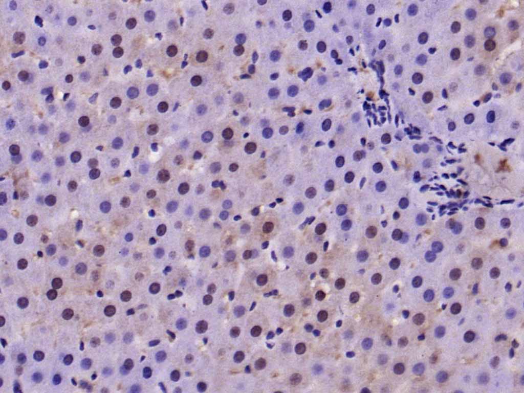 Paraformaldehyde-fixed, paraffin embedded (mouse liver); Antigen retrieval by boiling in sodium citrate buffer (pH6.0) for 15min; Block endogenous peroxidase by 3% hydrogen peroxide for 20 minutes; Blocking buffer (normal goat serum) at 37°C for 30min; Antibody incubation with (Nur77) Polyclonal Antibody, Unconjugated (bs-22601R) at 1:200 overnight at 4°C, followed by operating according to SP Kit(Rabbit) (sp-0023) instructionsand DAB staining.
