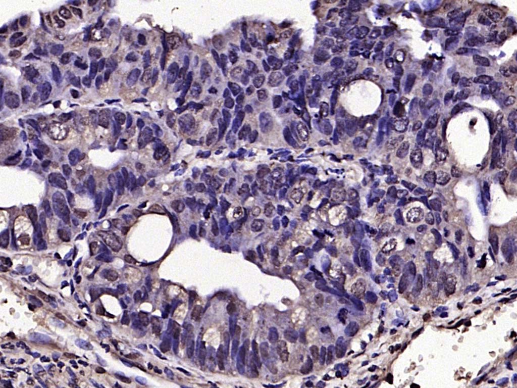 Paraformaldehyde-fixed, paraffin embedded (human colon carcinoma); Antigen retrieval by boiling in sodium citrate buffer (pH6.0) for 15min; Block endogenous peroxidase by 3% hydrogen peroxide for 20 minutes; Blocking buffer (normal goat serum) at 37°C for 30min; Antibody incubation with (phospho-SNAIL + SLUG (Ser246)) Polyclonal Antibody, Unconjugated (bs-22884R) at 1:200 overnight at 4°C, followed by operating according to SP Kit(Rabbit) (sp-0023) instructionsand DAB staining.