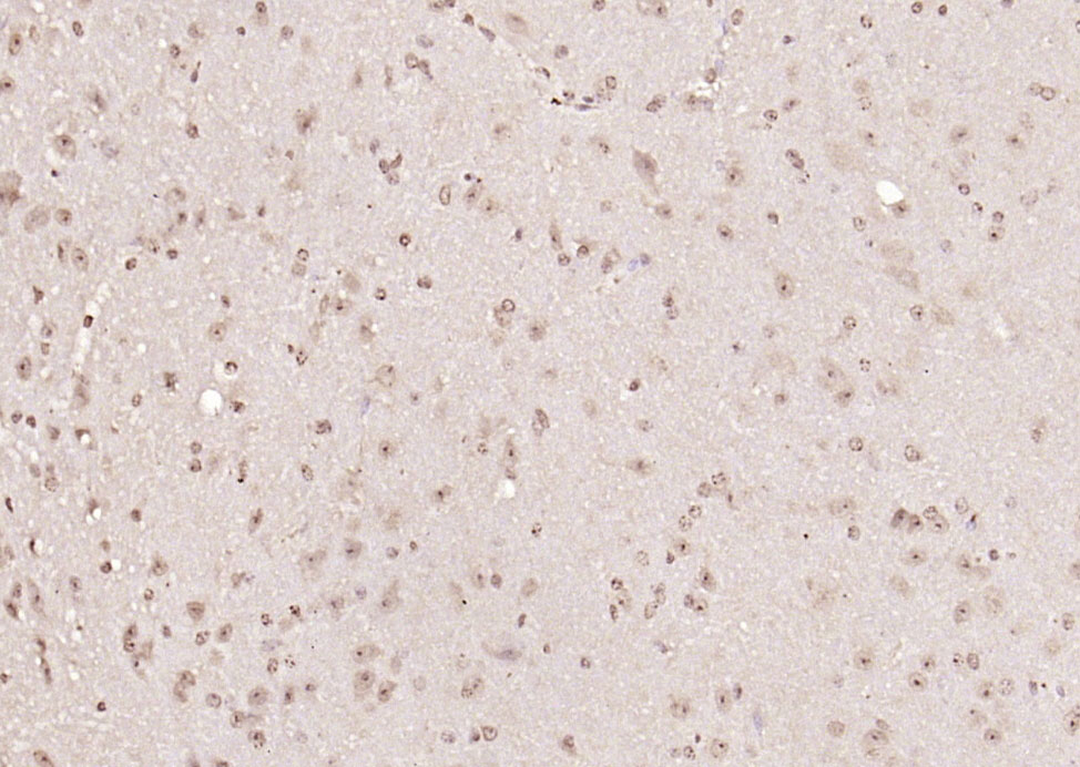 Paraformaldehyde-fixed, paraffin embedded (mouse brain); Antigen retrieval by boiling in sodium citrate buffer (pH6.0) for 15min; Block endogenous peroxidase by 3% hydrogen peroxide for 20 minutes; Blocking buffer (normal goat serum) at 37°C for 30min; Antibody incubation with (PPM1D) Polyclonal Antibody, Unconjugated (bs-22939R) at 1:200 overnight at 4°C, followed by operating according to SP Kit(Rabbit) (sp-0023) instructionsand DAB staining.