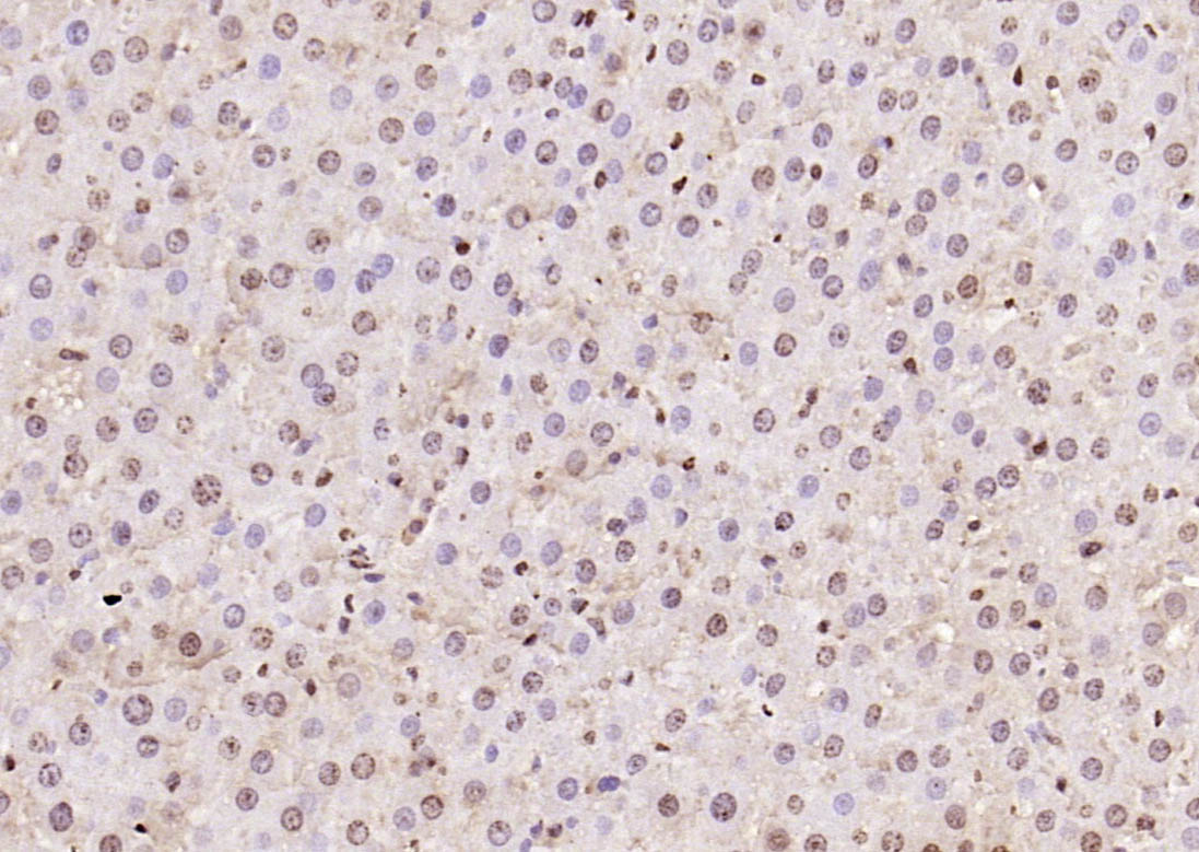 Paraformaldehyde-fixed, paraffin embedded (mouse liver); Antigen retrieval by boiling in sodium citrate buffer (pH6.0) for 15min; Block endogenous peroxidase by 3% hydrogen peroxide for 20 minutes; Blocking buffer (normal goat serum) at 37°C for 30min; Antibody incubation with (PPM1D) Polyclonal Antibody, Unconjugated (bs-22939R) at 1:200 overnight at 4°C, followed by operating according to SP Kit(Rabbit) (sp-0023) instructionsand DAB staining.