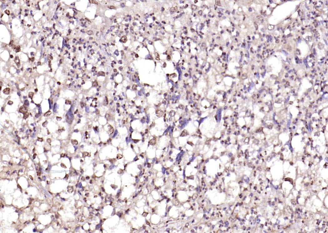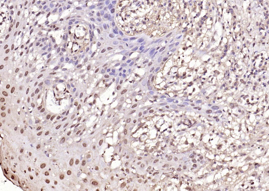 Paraformaldehyde-fixed, paraffin embedded (human laryngeal carcinoma); Antigen retrieval by boiling in sodium citrate buffer (pH6.0) for 15min; Block endogenous peroxidase by 3% hydrogen peroxide for 20 minutes; Blocking buffer (normal goat serum) at 37°C for 30min; Antibody incubation with (PPM1D) Polyclonal Antibody, Unconjugated (bs-22939R) at 1:200 overnight at 4°C, followed by operating according to SP Kit(Rabbit) (sp-0023) instructionsand DAB staining.