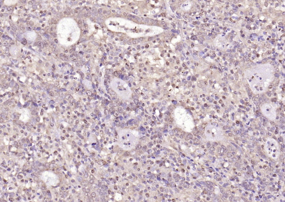 Paraformaldehyde-fixed, paraffin embedded (human rectal carcinoma); Antigen retrieval by boiling in sodium citrate buffer (pH6.0) for 15min; Block endogenous peroxidase by 3% hydrogen peroxide for 20 minutes; Blocking buffer (normal goat serum) at 37°C for 30min; Antibody incubation with (PPM1D) Polyclonal Antibody, Unconjugated (bs-22939R) at 1:200 overnight at 4°C, followed by operating according to SP Kit(Rabbit) (sp-0023) instructionsand DAB staining.