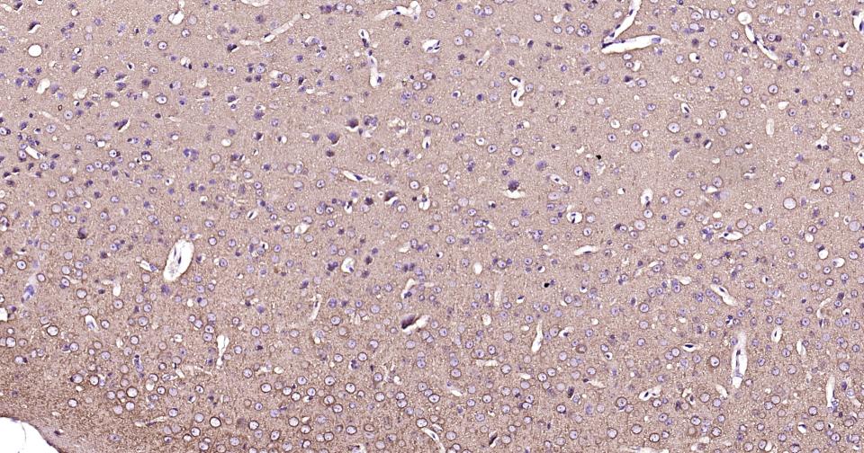 Paraformaldehyde-fixed, paraffin embedded Rat Cerebrum; Antigen retrieval by boiling in sodium citrate buffer (pH6.0) for 15 min; Antibody incubation with Tubulin beta-III Monoclonal Antibody, Unconjugated(bsm-52323R) at 1:200 overnight at 4°C, followed by conjugation to the SP Kit (Rabbit, SP-0023)and DAB (C-0010) staining.