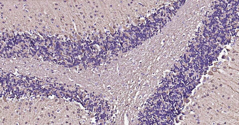 Paraformaldehyde-fixed, paraffin embedded Mouse Cerebellum; Antigen retrieval by boiling in sodium citrate buffer (pH6.0) for 15 min; Antibody incubation with Tubulin beta-III Monoclonal Antibody, Unconjugated(bsm-52323R) at 1:200 overnight at 4°C, followed by conjugation to the SP Kit (Rabbit, SP-0023)and DAB (C-0010) staining.