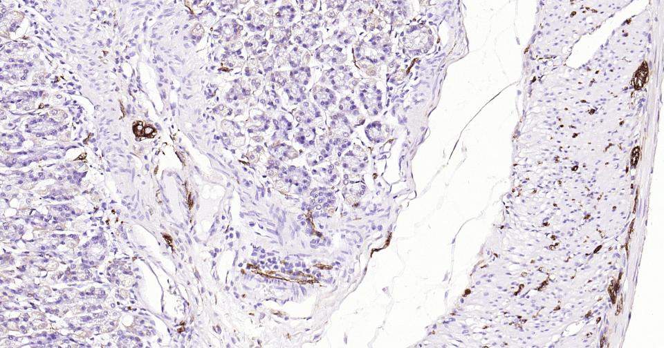Paraformaldehyde-fixed, paraffin embedded Mouse Stomach; Antigen retrieval by boiling in sodium citrate buffer (pH6.0) for 15 min; Antibody incubation with Tubulin beta-III Monoclonal Antibody, Unconjugated(bsm-52323R) at 1:200 overnight at 4°C, followed by conjugation to the SP Kit (Rabbit, SP-0023)and DAB (C-0010) staining.