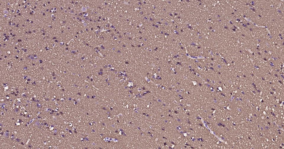 Paraformaldehyde-fixed, paraffin embedded Human Cerebrum; Antigen retrieval by boiling in sodium citrate buffer (pH6.0) for 15 min; Antibody incubation with Tubulin beta-III Monoclonal Antibody, Unconjugated(bsm-52323R) at 1:200 overnight at 4°C, followed by conjugation to the SP Kit (Rabbit, SP-0023)and DAB (C-0010) staining.