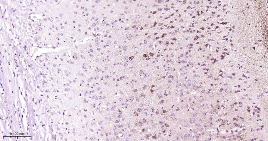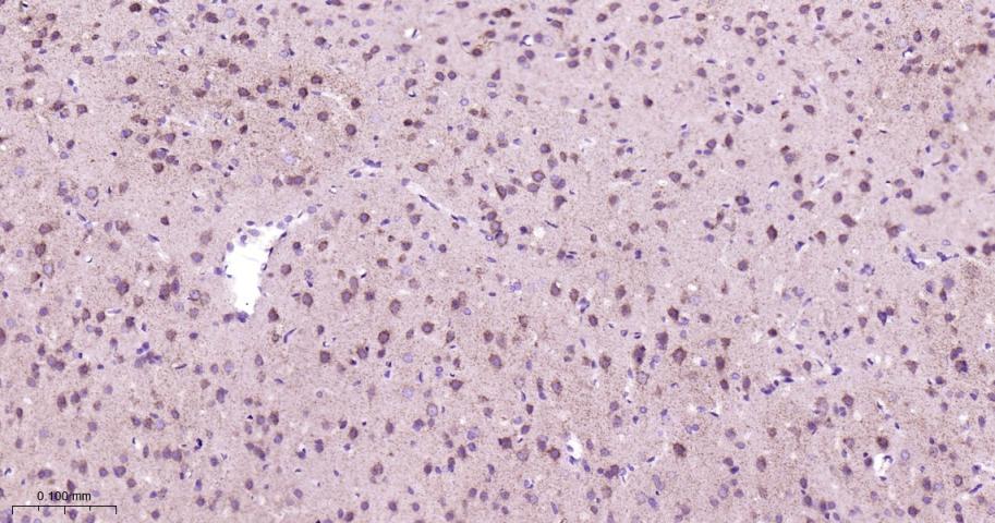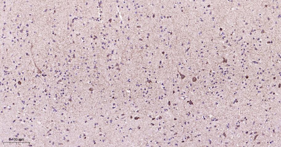 Paraformaldehyde-fixed, paraffin embedded Rat Cerebrum; Antigen retrieval by boiling in sodium citrate buffer (pH6.0) for 15 min; Antibody incubation with SOD2 Monoclonal Antibody, Unconjugated(bsm-52741R) at 1:200 overnight at 4°C, followed by conjugation to the bs-0295G-HRP and DAB (C-0010) staining.