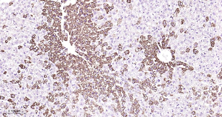 Paraformaldehyde-fixed, paraffin embedded Rat Liver; Antigen retrieval by boiling in sodium citrate buffer (pH6.0) for 15 min; Antibody incubation with SOD2 Monoclonal Antibody, Unconjugated(bsm-52741R) at 1:200 overnight at 4°C, followed by conjugation to the bs-0295G-HRP and DAB (C-0010) staining.
