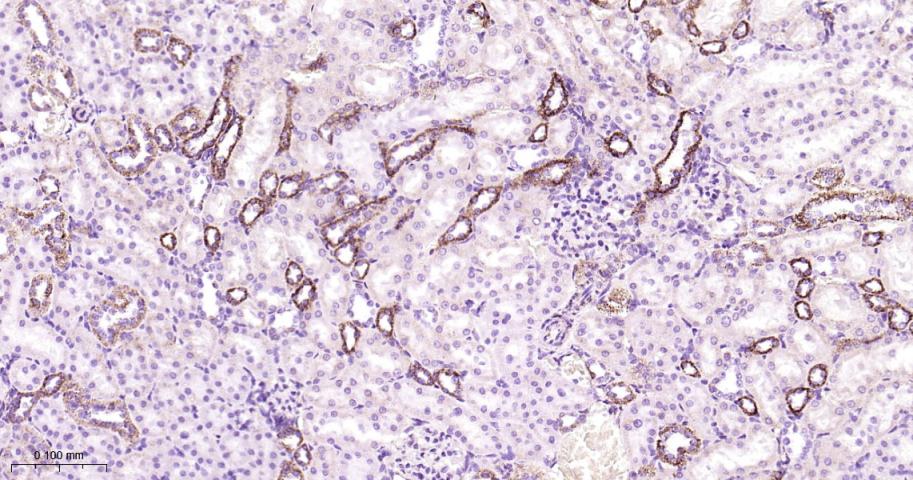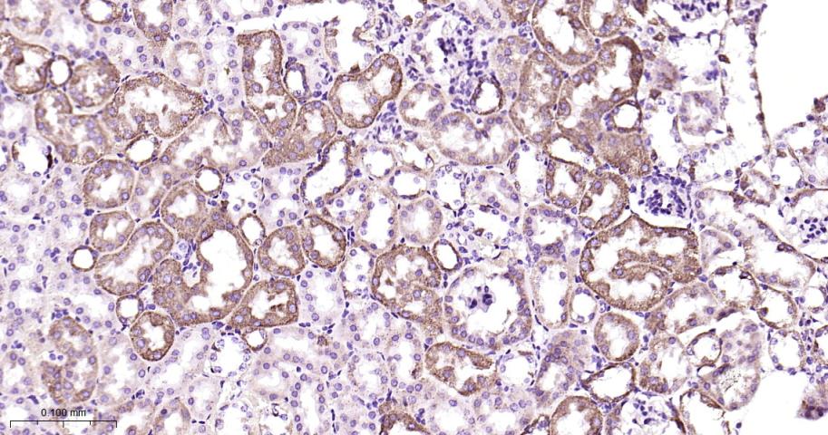 Paraformaldehyde-fixed, paraffin embedded Rat Kidney; Antigen retrieval by boiling in sodium citrate buffer (pH6.0) for 15 min; Antibody incubation with SOD2 Monoclonal Antibody, Unconjugated(bsm-52741R) at 1:200 overnight at 4°C, followed by conjugation to the bs-0295G-HRP and DAB (C-0010) staining.