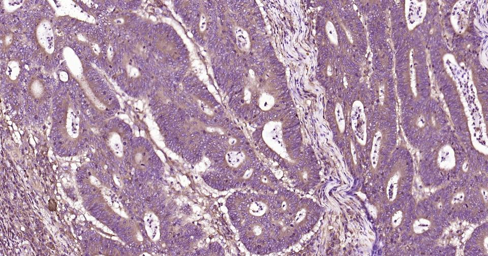 Paraformaldehyde-fixed, paraffin embedded Human Colon Cancer; Antigen retrieval by boiling in sodium citrate buffer (pH6.0) for 15 min; Antibody incubation with Calretinin Monoclonal Antibody, Unconjugated(bsm-54076R) at 1:200 overnight at 4°C, followed by conjugation to the bs-0295G-HRP and DAB (C-0010) staining.