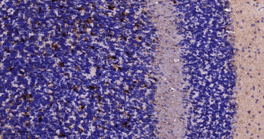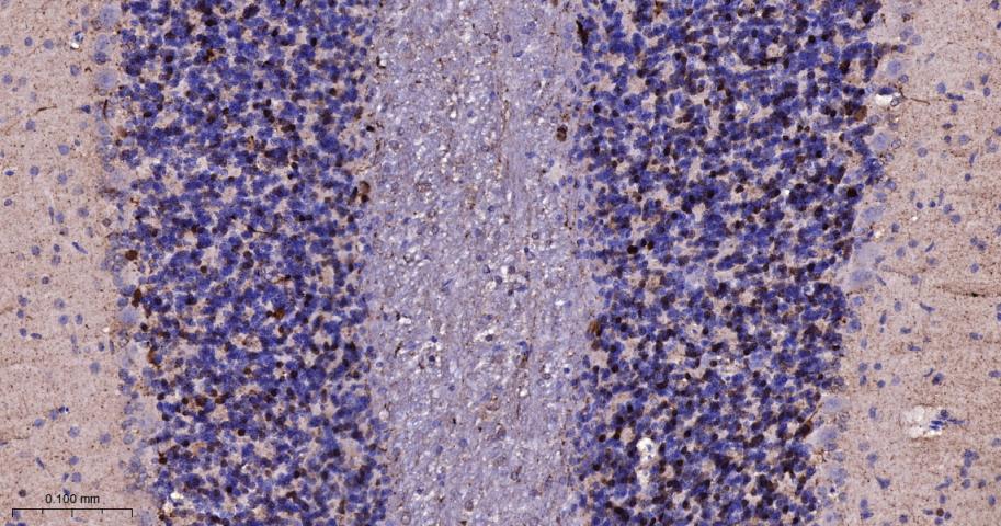 Paraformaldehyde-fixed, paraffin embedded Mouse Cerebellum; Antigen retrieval by boiling in sodium citrate buffer (pH6.0) for 15 min; The section was incubated with Ku80 Monoclonal Antibody, Unconjugated (bsm-52512R) at 1:200 overnight at 4°C, followed by conjugation to the bs-0295G-HRP and DAB (C-0010) staining.